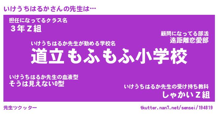 | ヘコむあだ名 | 『いけにゅー』『なまこ酢』『いけを』 |