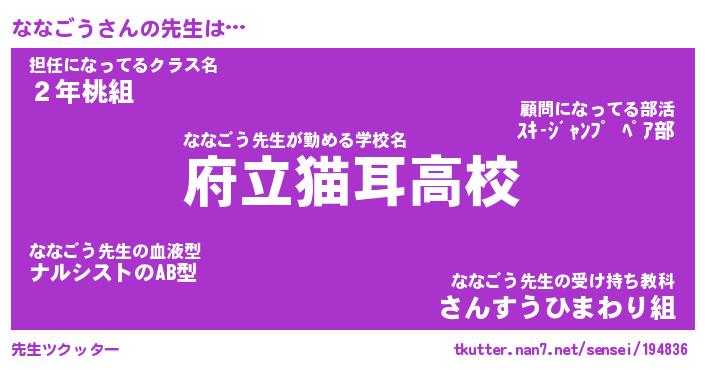 | 意味不明あだ名 | 『ペロリンななごう』『永久保存ななごう』 |