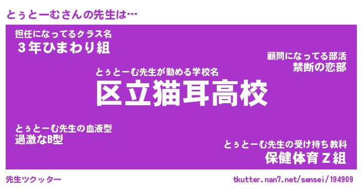 | ファンタジー風あだ名 | 『トゥフェル』『エターナルトゥトームー』 |