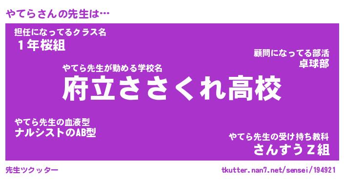 | ポケモン風あだ名 | 『ヤテチュウ』『ヤテラダネ』 |