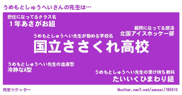 | 意味不明あだ名 | 『ペロリンうめもとしゅうへい』 |