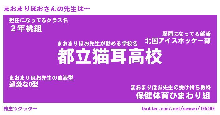 | 肩書あだ名 | 『まおまりほお社長』『まおまりほお先生』 |