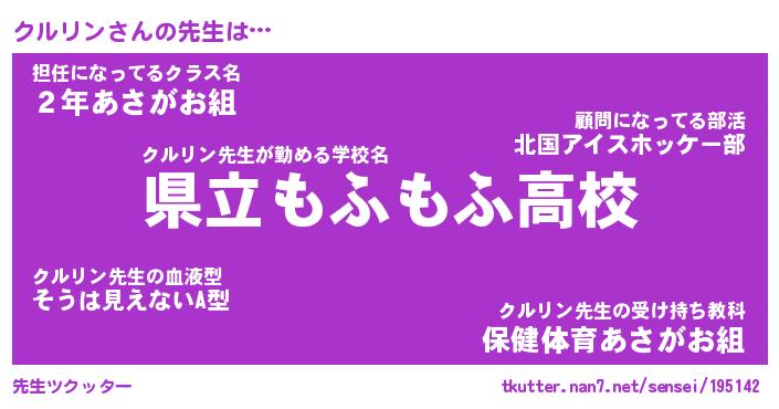 | ファンタジー風あだ名 | 『クルフェル』『エターナルクルリンー』 |