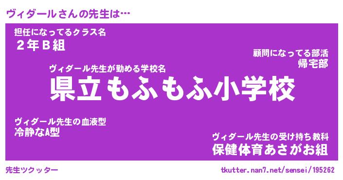 | 肩書あだ名 | 『ヴィダール店長』『ヴィダール総理大臣』 |