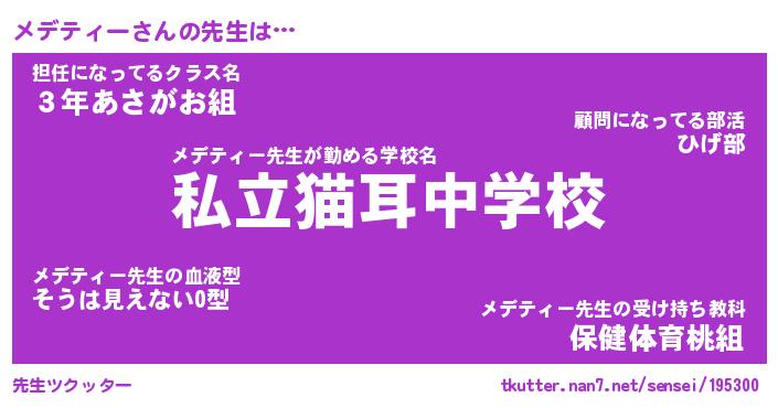 | 肩書あだ名 | 『メデティー社長』『メデティー大統領』 |