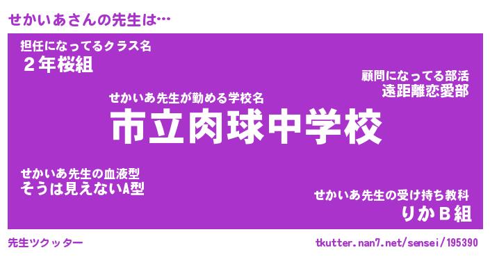 | 意味不明あだ名 | 『ペロリンせかいあ』『永久保存せかいあ』 |