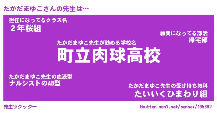 | ポケモン風あだ名 | 『タカチュウ』『タカダダネ』 |
