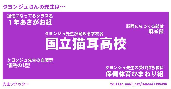 | 男性向けラノベタイトル風あだ名 | 『クヨンジュの憂鬱』 |