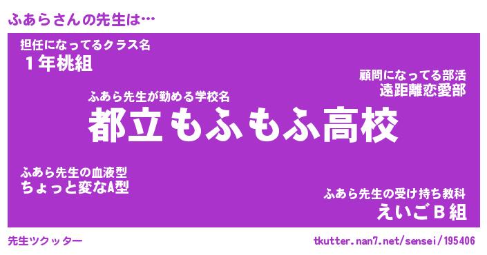 | ファンタジー風あだ名 | 『フアフェル』『エターナルフアラー』 |