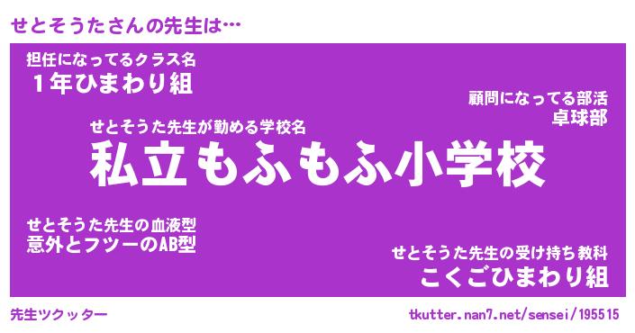| ポケモン風あだ名 | 『セトチュウ』『セトソダネ』 |