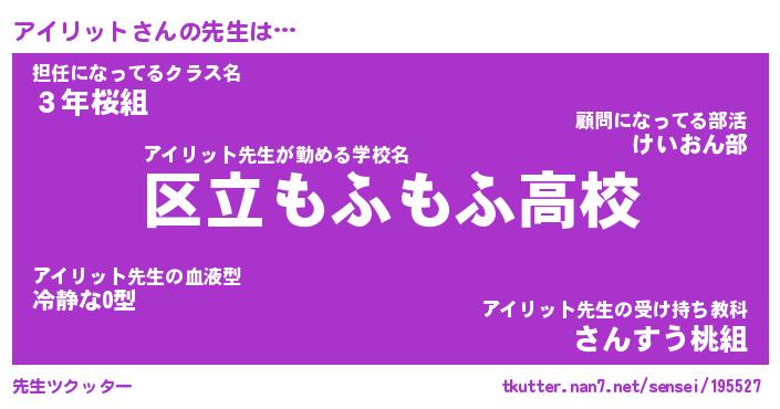 | ヒーロー風カッコイイあだ名 | 『スーパーアイリット』『黄金騎士アイ』 |