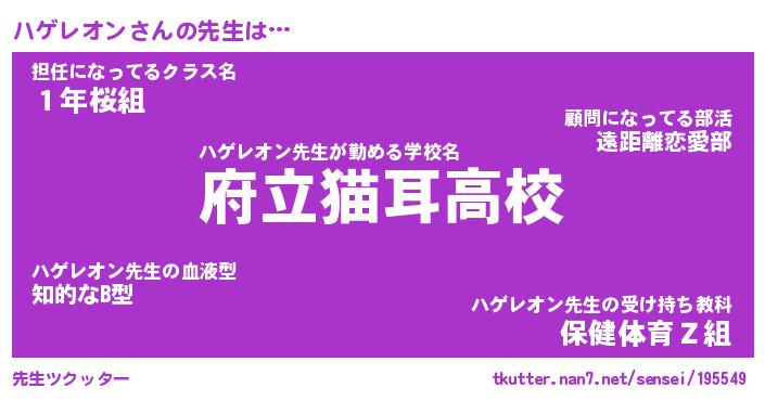 | ファンタジー風あだ名 | 『ハゲフェル』『エターナルハゲレオンー』 |