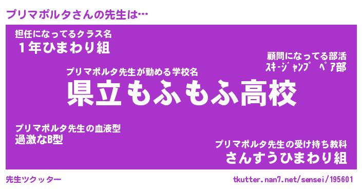 | 肩書あだ名 | 『プリマポルタ店長』『プリマポルタ班長』 |