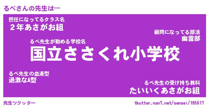 | ヘコむあだ名 | 『るべもー』『なまこ酢』『るべっ子』 |
