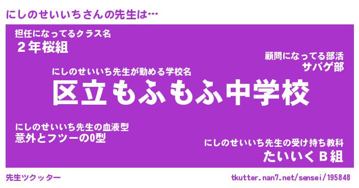 | ポケモン風あだ名 | 『ニシチュウ』『ニシノダネ』 |