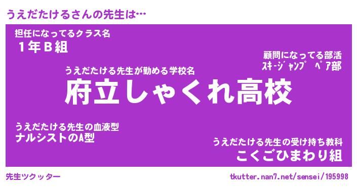 | 伝説のあだ名 | 『封印されしスナイパーうえだたける』 |