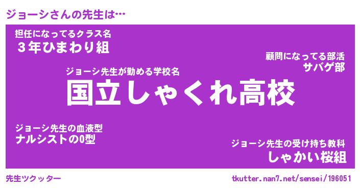 | 意味不明あだ名 | 『ペロリンジョーシ』『永久保存ジョーシ』 |
