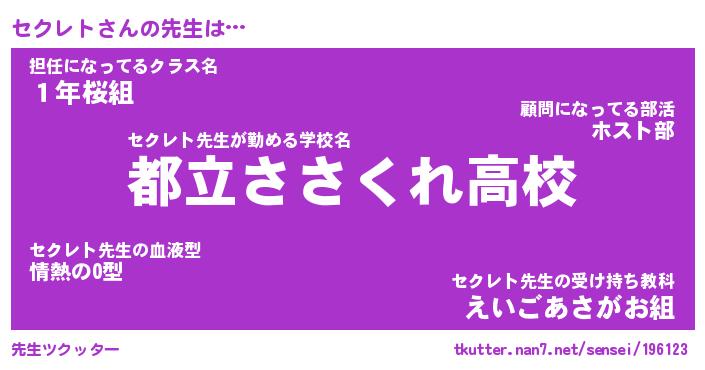 | ヒーロー風カッコイイあだ名 | 『スーパーセクレト』『天弓騎士セク』 |