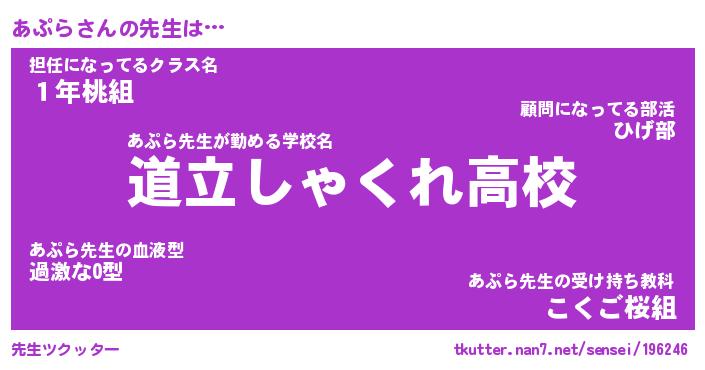 | ヒーロー風カッコイイあだ名 | 『スーパーアプラ』『ウルトラあぷらマン』 |