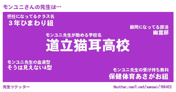| 意味不明あだ名 | 『ペロリンモンユニ』『永久保存モンユニ』 |