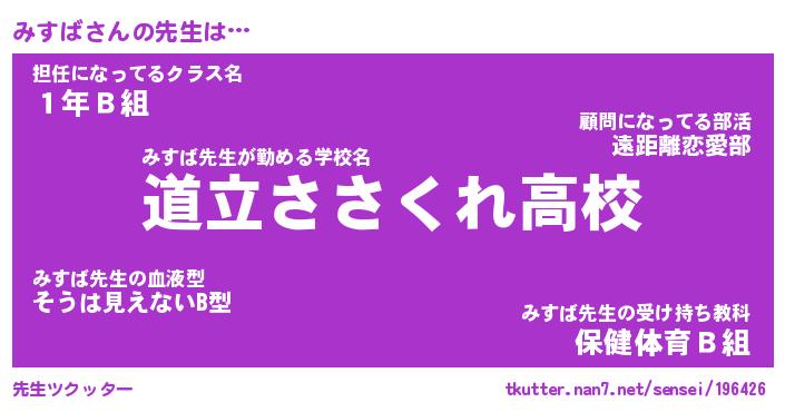| ヒーロー風カッコイイあだ名 | 『スーパーミスバ』『ウルトラみすばマン』 |