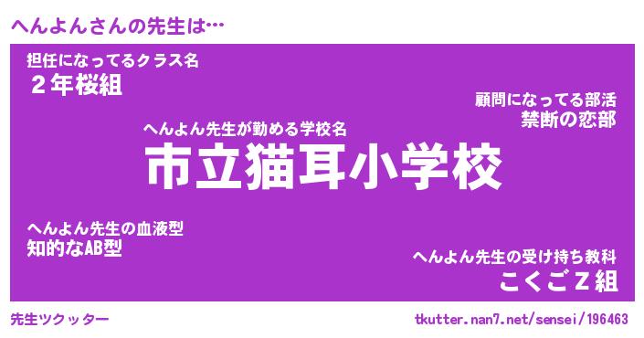 | 意味不明あだ名 | 『ペロリンへんよん』『永久保存へんよん』 |