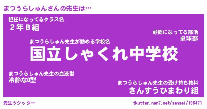 | 肩書あだ名 | 『まつうらしゅん御曹司』 |