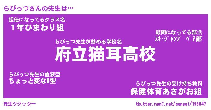 | 意味不明あだ名 | 『ペロリンらびっつ』『永久保存らびっつ』 |