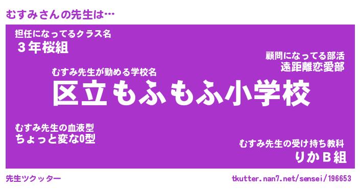 | 2回繰り返すあだ名 | 『むすむす』『むむすす』『ぬれぬれ』 |