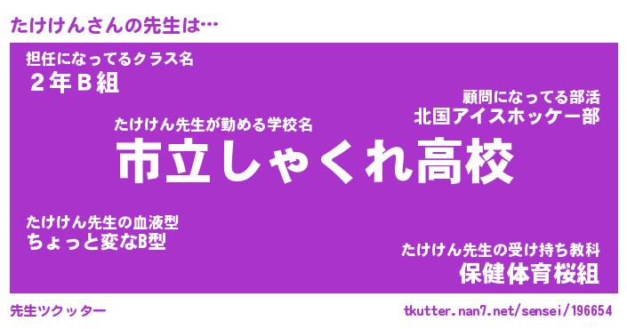 | 意味不明あだ名 | 『ペロリンたけけん』『永久保存たけけん』 |