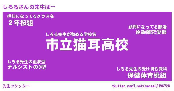 | ファンタジー風あだ名 | 『シロフェル』『エターナルシロルー』 |