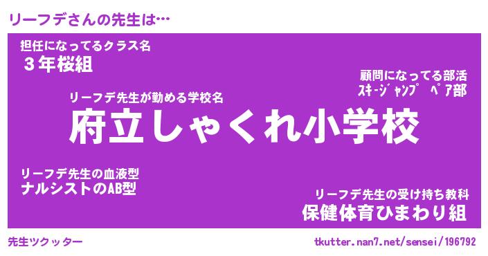 | 意味不明あだ名 | 『ペロリンリーフデ』『永久保存リーフデ』 |