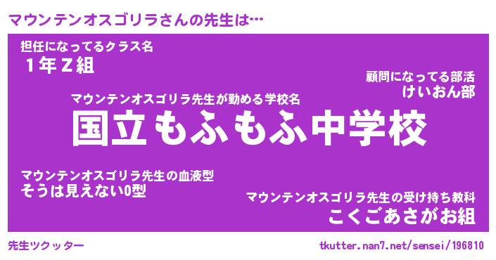 | 欧米人風あだ名 | 『マイケルマウンテンオスゴリラ』 |