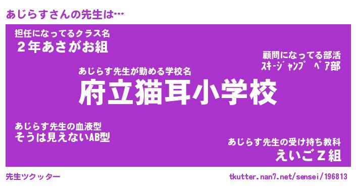 | 意味不明あだ名 | 『ペロリンあじらす』『永久保存あじらす』 |