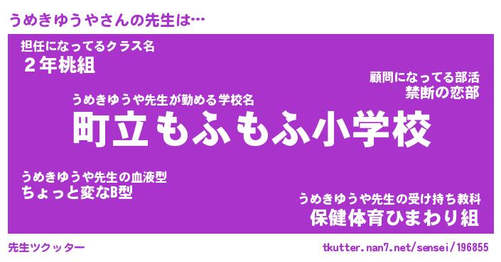| ヒーロー風カッコイイあだ名 | 『スーパーウメキユウヤ』『幻影騎士ウメ』 |