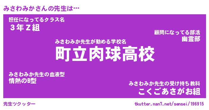 | ヒーロー風カッコイイあだ名 | 『スーパーミサワミカ』『暗黒騎士ミサ』 |
