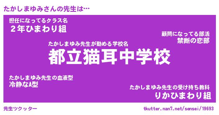 | 肩書あだ名 | 『たかしまゆみ社長』『たかしまゆみ班長』 |