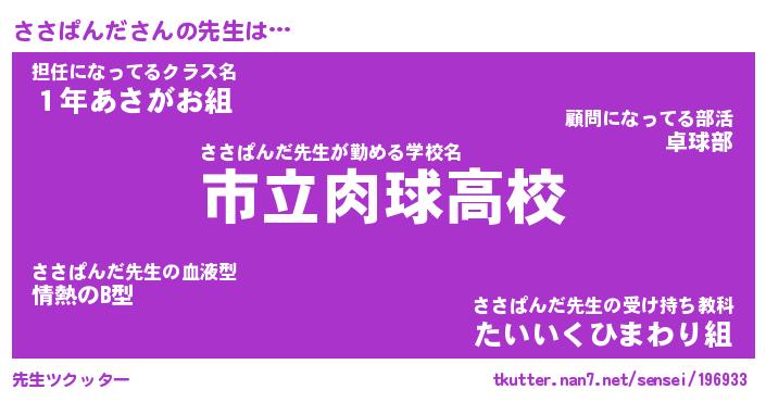 | ファンタジー風あだ名 | 『ササフェル』『エターナルササパンダー』 |