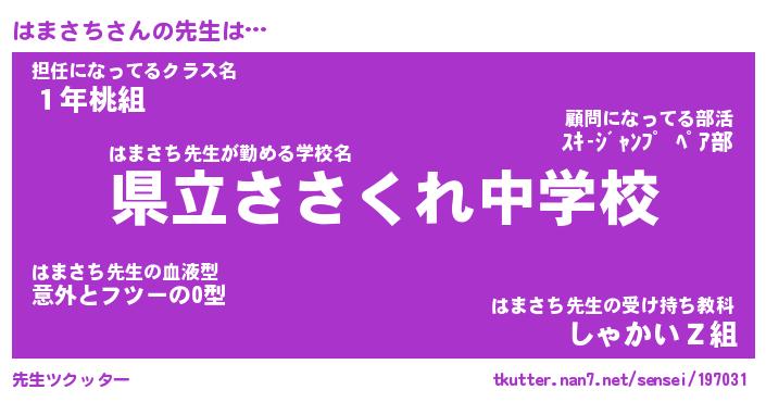 | 意味不明あだ名 | 『ペロリンはまさち』『永久保存はまさち』 |