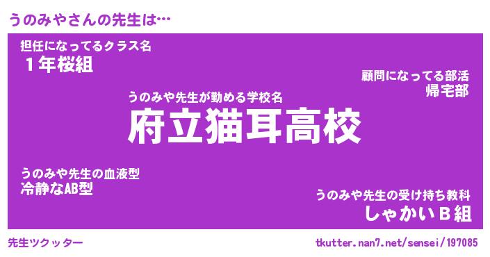 | ファンタジー風あだ名 | 『ウノフェル』『エターナルウノミヤー』 |