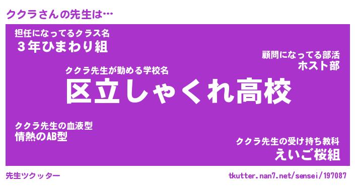 | ヒーロー風カッコイイあだ名 | 『スーパーククラ』『ウルトラククラマン』 |