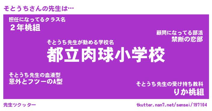 | 意味不明あだ名 | 『ペロリンそとうち』『永久保存そとうち』 |