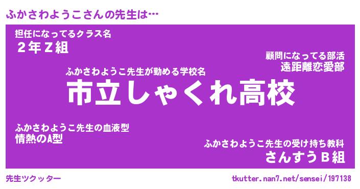 | 肩書あだ名 | 『ふかさわようこ御曹司』 |