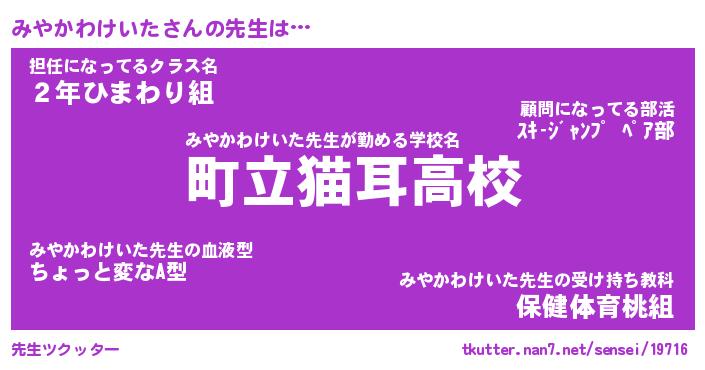 | ファンタジー風あだ名 | 『ミヤフェル』『ファントムミヤス』 |