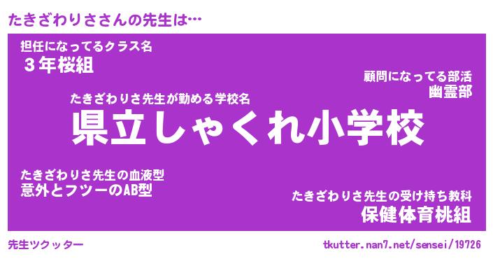 | ヒーロー風カッコイイあだ名 | 『スーパータキザワリサ』『幻影騎士タキ』 |