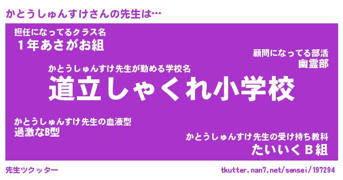 | ヒーロー風カッコイイあだ名 | 『スーパーカトウシュンスケ』 |