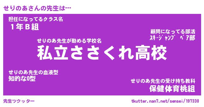 | 伝説のあだ名 | 『伝説のスナイパーせりのあ』 |