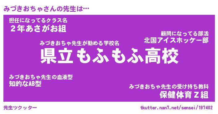 | ポケモン風あだ名 | 『ミヅチュウ』『ミヅキダネ』 |