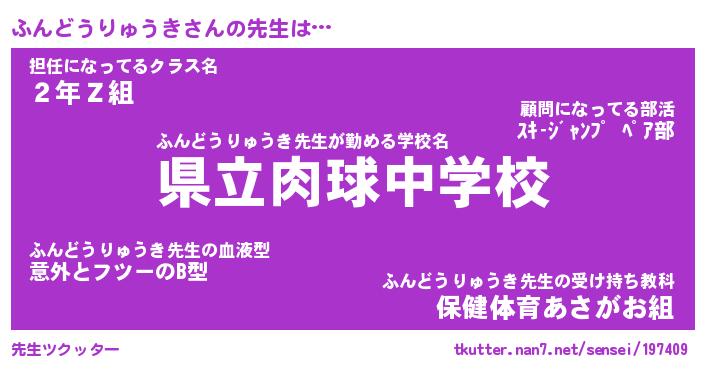 | 男性向けラノベタイトル風あだ名 | 『ふんどうりゅうきの憂鬱』 |