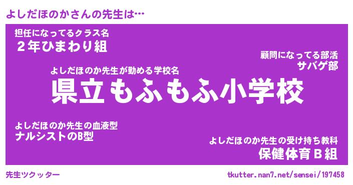 | ヒーロー風カッコイイあだ名 | 『スーパーヨシダホノカ』『炎刃騎士ヨシ』 |
